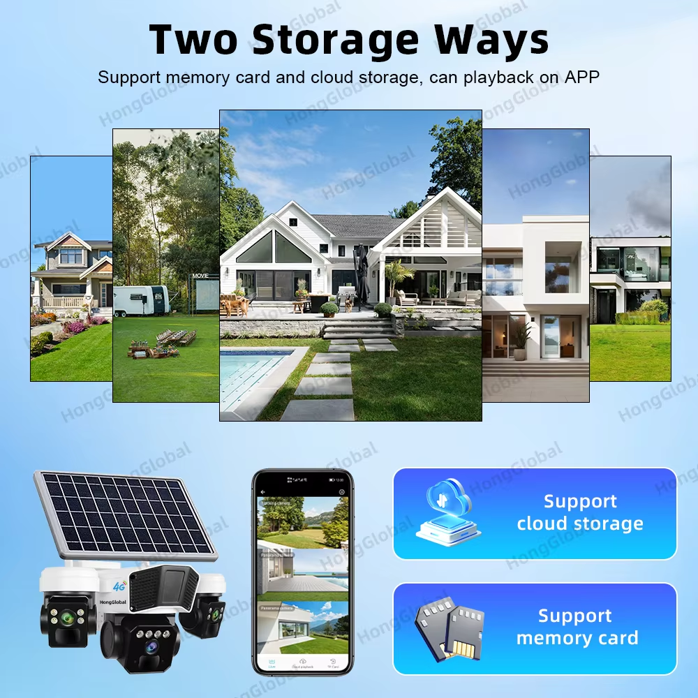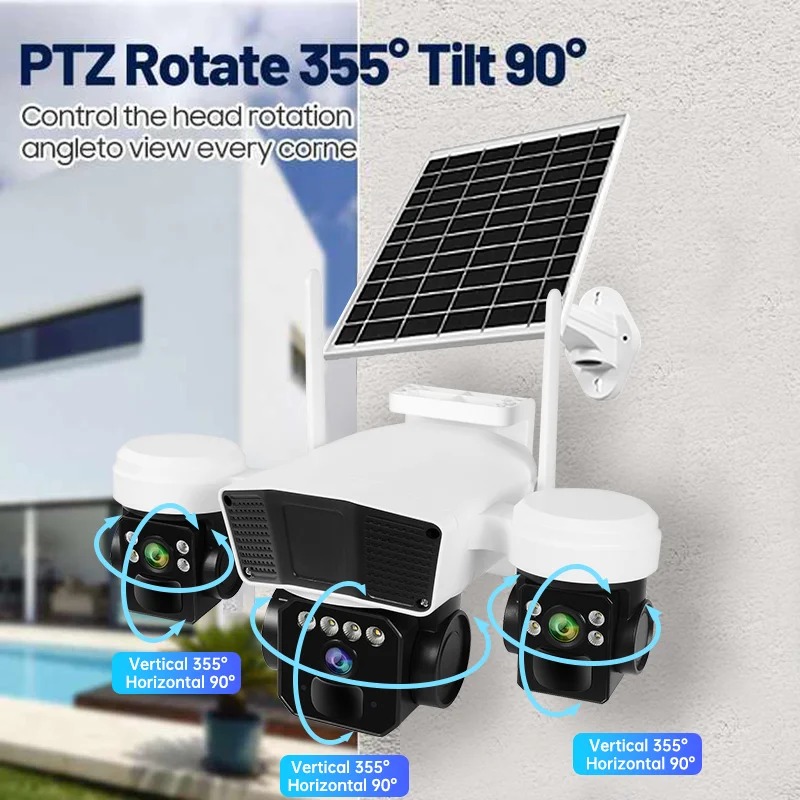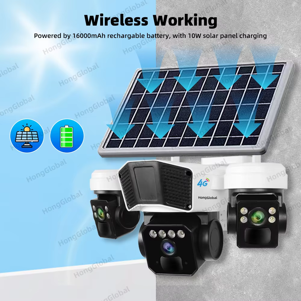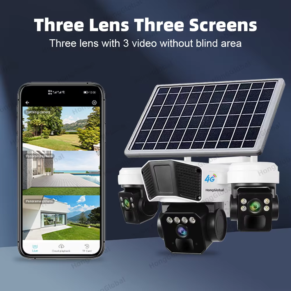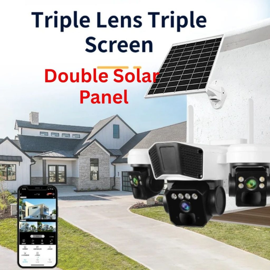 Double Solar Panels | 4G CCTV Camera | 3 Lenses, 3 Screens